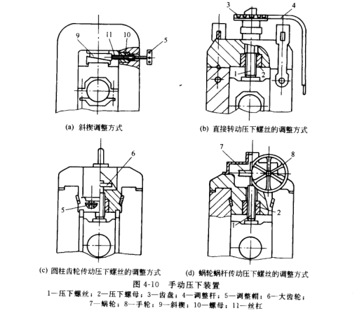 常見的手動壓下裝置又一下四種形式,如圖4-10所示。
