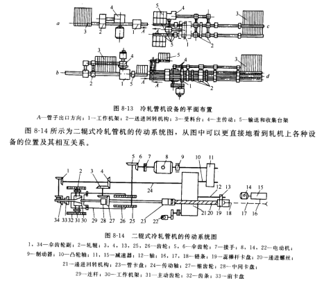 目前用冷軋的方法可以軋制直徑為 φ4~450mm、厚度為0.2~35mm管材。所用軋機主要為二輥式冷軋管機和多輥式冷軋管機。冷軋管機本身由各種設(shè)備和機構(gòu)組成,一般包括以下幾個部分。